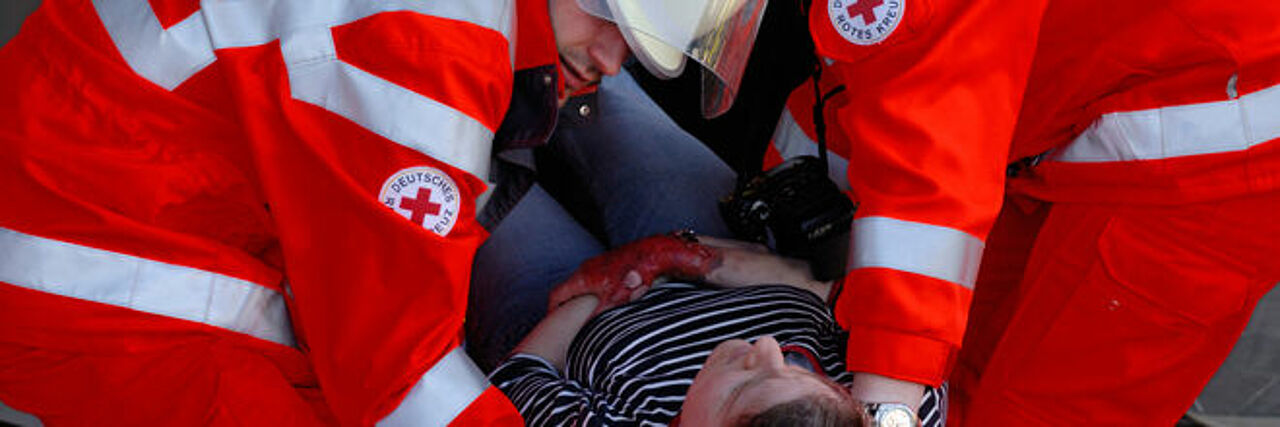 Ob Rockkonzert, Fußballspiel, Karnevalsumzug oder Straßenfest – wo viele Menschen zusammenkommen, gibt es viele kleine und größere Notfälle. Hier leistet der Sanitätsdienst des Deutschen Roten Kreuzes ebenso schnelle Hilfe wie im Katastrophenfall. Der Sanitätsdienst ist auch zur Stelle, wenn Menschen verschüttet wurden: mit den Rettungshunden.