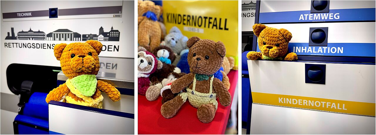 Jeder einzelne Bär ist ein Einzelstück – handgefertigt von Gabriele Gerstner aus Gaggenau. Die ersten 50 Bären wurden 2023 an den Rettungsdienst Mittelbaden in Rastatt übergeben und sind nun in den Rettungswagen bereit, um in Notlagen Trost zu spenden. Inzwischen wurden bereits über 250 liebevoll gestaltete Bären durch die großzügigen Spenden zur Verfügung gestellt.